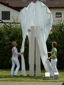 Das geplante Skulpturenprojekt mit Alfred Wolf am Bahnhof konntein den Herbstferien realisiert werden: Vielen von Ihnen ist Alfred Wolf vom ersten Skulpturensymposium mit seinem Werk „Müßiggang“ bekannt, das am Wiesensee viele Spaziergänger erfreut. Die aktuell entstandene Skulptur nimmt Bezug auf Menschen, die ankommen und abreisen. Der Künstler fertigte die Skulptur aus unterschiedlichen Metallen und Sandstein. Wieder war die Bevölkerung herzlich eingeladen, dem Künstler bei seiner Arbeit zuzusehen, mit ihm ins Gespräch zu kommen und die Entstehung der Skulptur zu verfolgen. Die Vernissage fand am 24.10.2014 um 18 Uhr statt und wurde durch das Duo „Acoustic Pieces“ musikalisch umrahmt. www.acoustic-pieces.de.